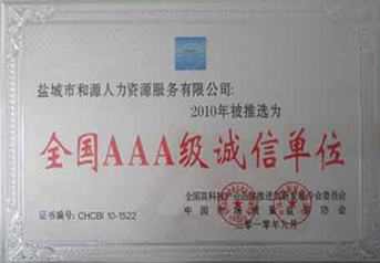 全国AAA级诚信单位